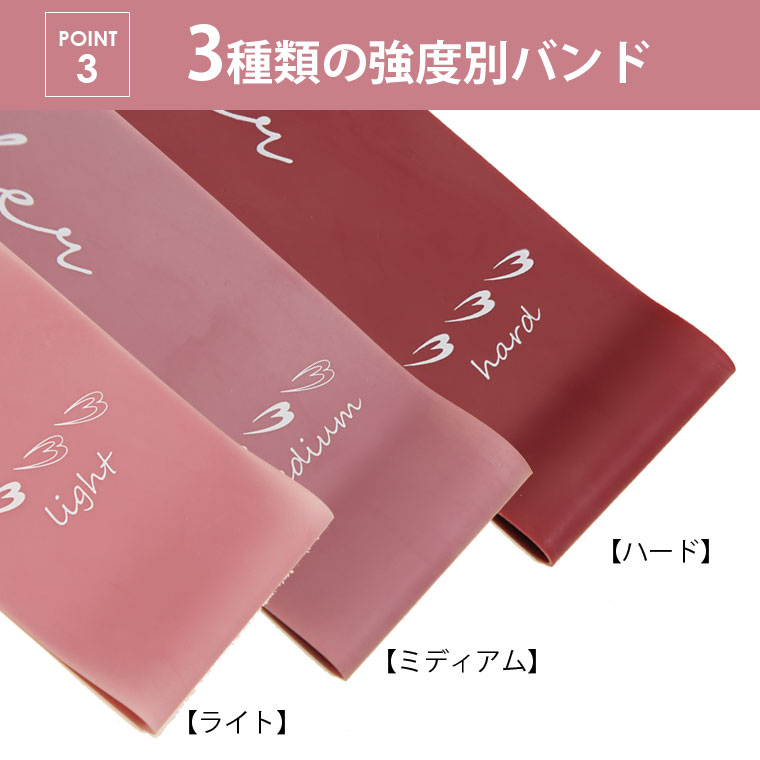 強度別バンド3種類セットで、目的やレベルに応じて使い分けが可能!