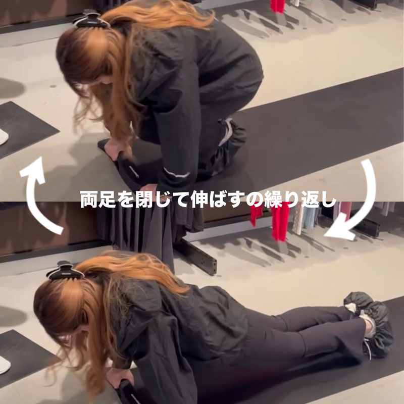→お腹に力を入れて下っ腹で引き寄せるようにすると腹筋にバシッと効きます!