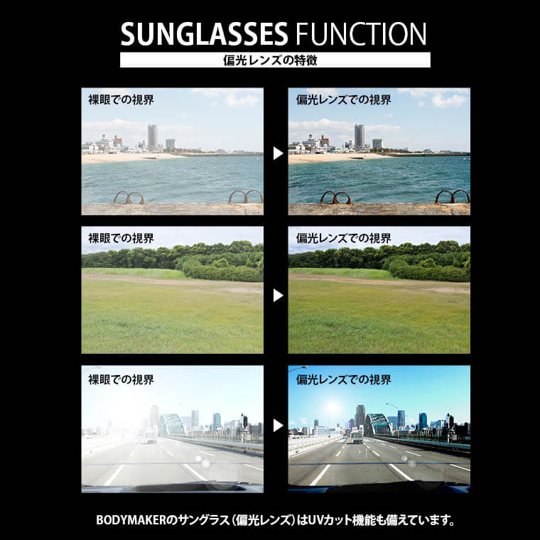 BODYMAKERの偏光サングラスで、今までにないクリアな視界を体感してみてください。
