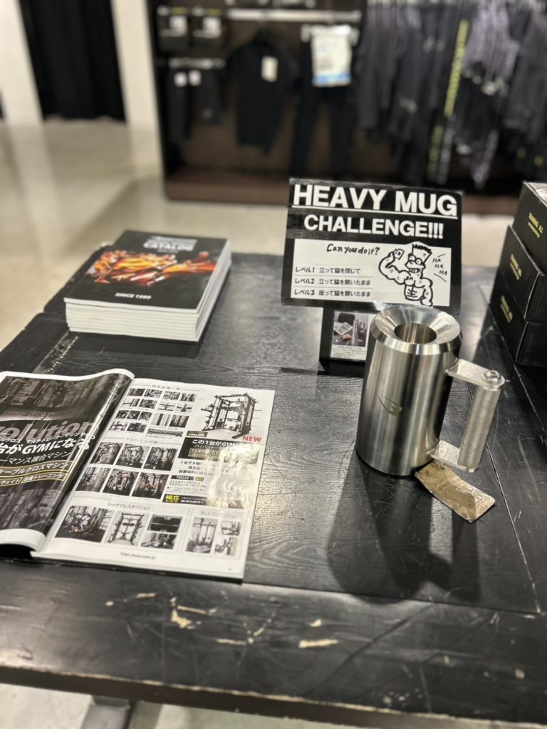 その際に当社の商品、マグカップダンベルでちょっとしたチャレンジをおこなってもらうという企画をおこない